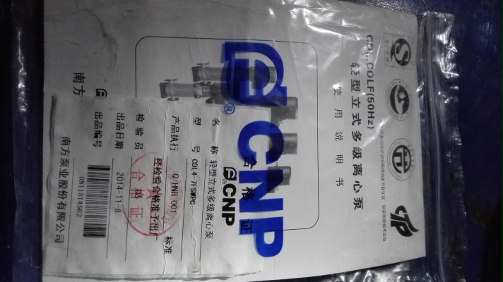 南方水泵说明书及合格证